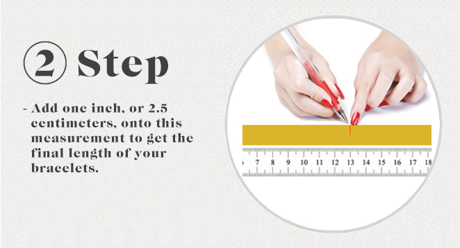 Just wrap the soft tape measure around the broadest part of your wrist and take note of the length. If you are using a plain strip of paper, mark your size with a pen or pencil then use a ruler to measure the length (The starting end of the paper must be at the base of the ruler and marked 0). That would be your wrist size.